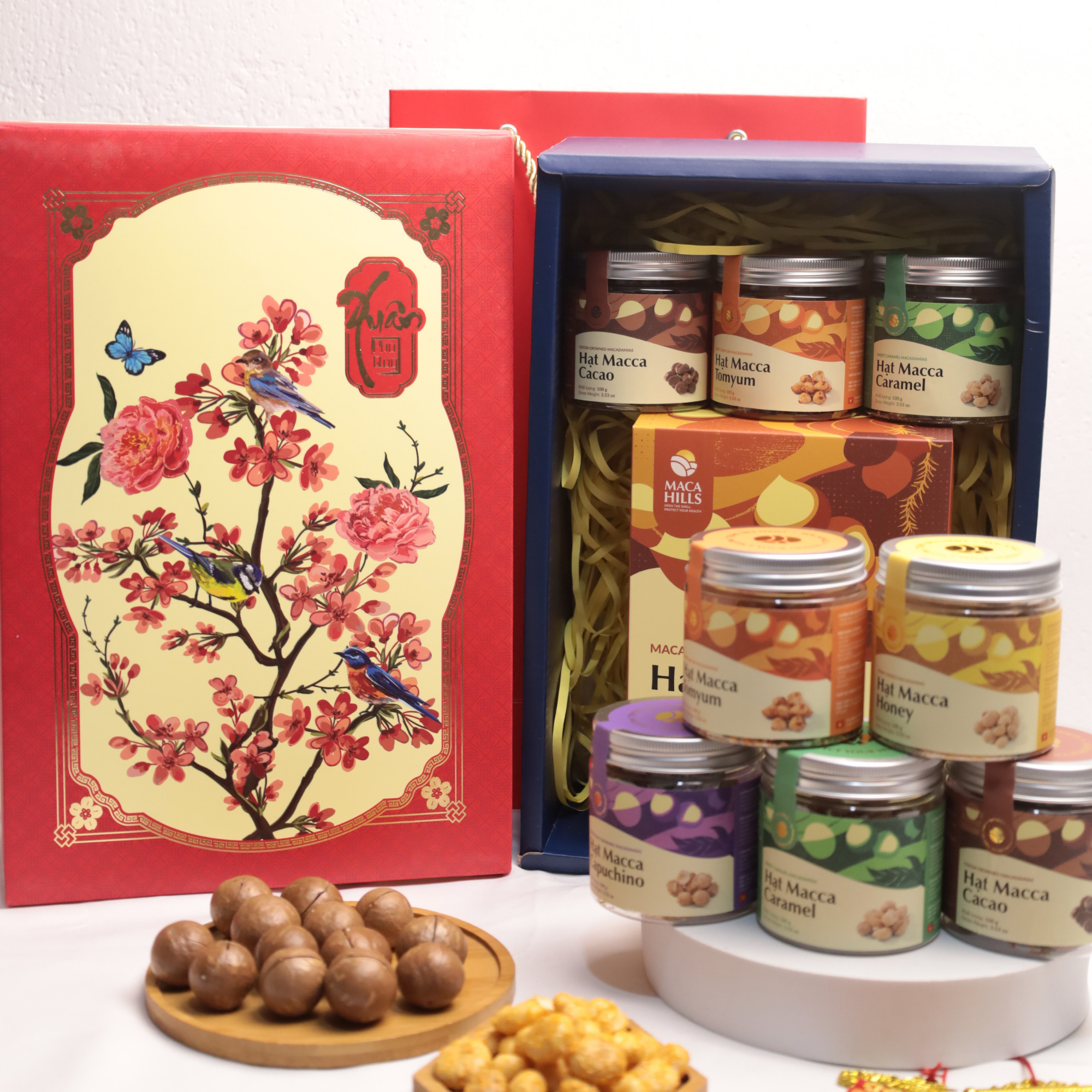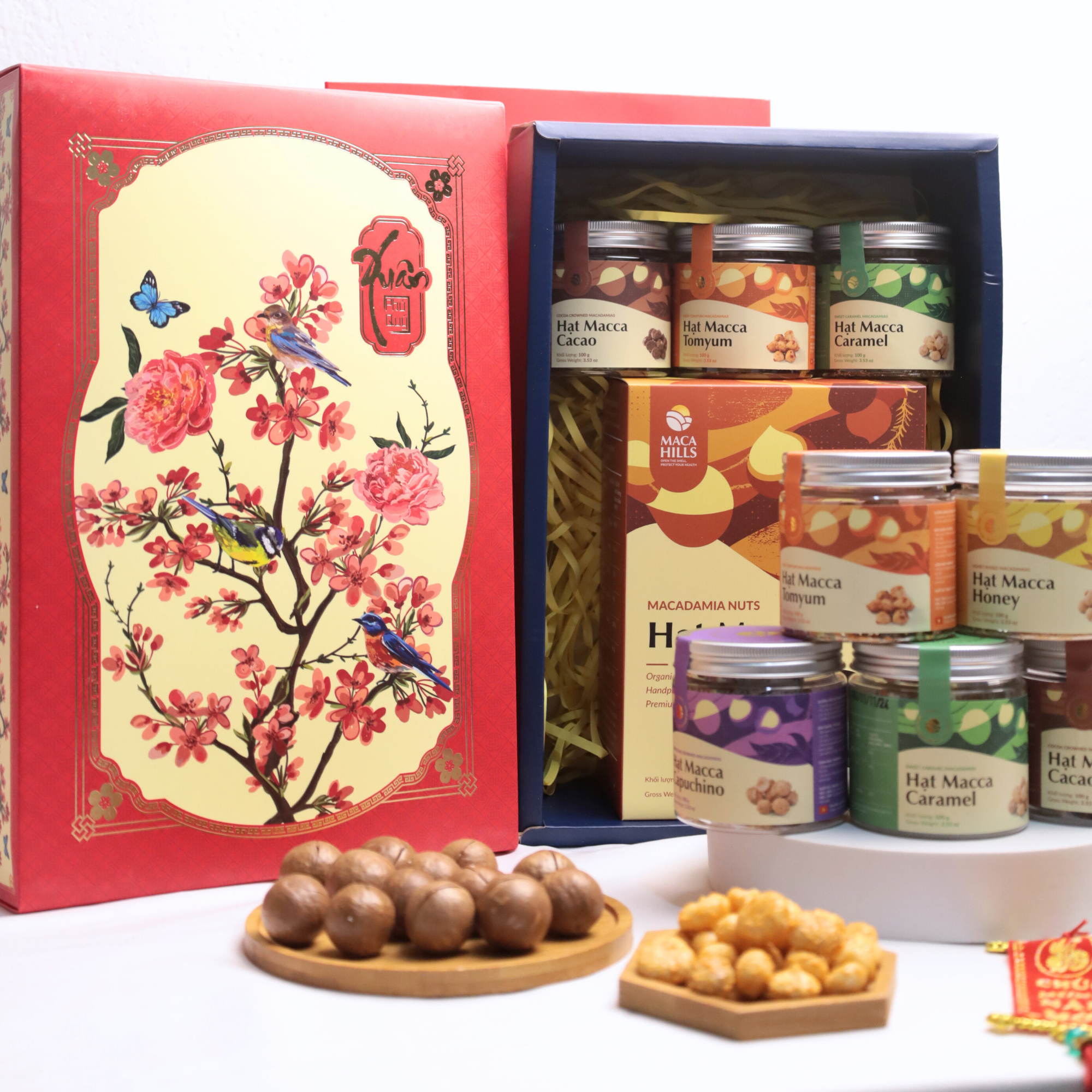Quà tặng tết Xuân Sum Vầy - Hộp quà tết Macca Cao Cấp